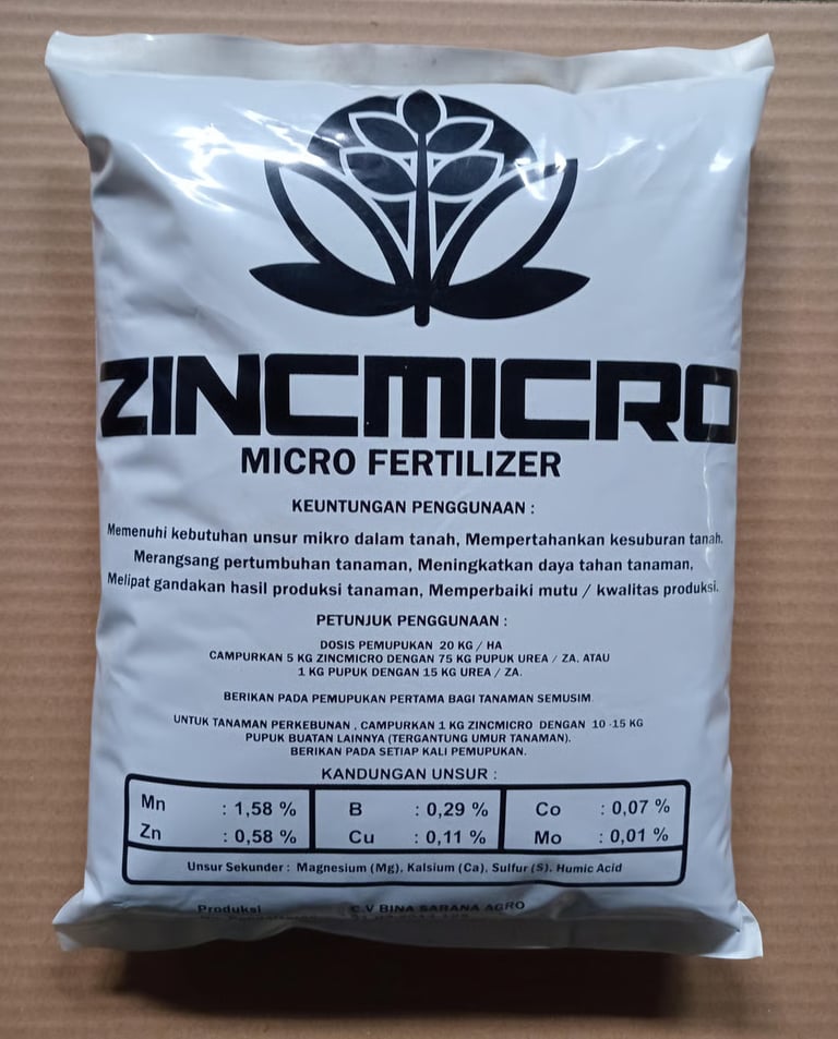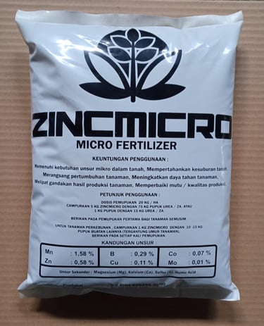 By addressing micronutrient deficiencies, Zincmicro strengthens root development and supports sustainable farming practices. It is available in convenient 1 kg and 5 kg packages, in a fine gray powder form that is easy to apply to the soil.