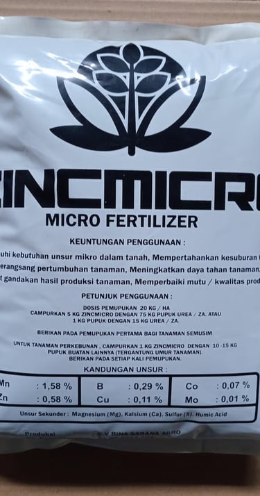 Zincmicro Micro Fertilizer is a premium micronutrient blend specially formulated to enrich the soil and enhance plant vitality. Enriched with essential elements such as zinc, manganese, boron, copper, and molybdenum, this fertilizer helps optimize nutrient absorption for stronger growth, higher yields, and consistent crop quality.